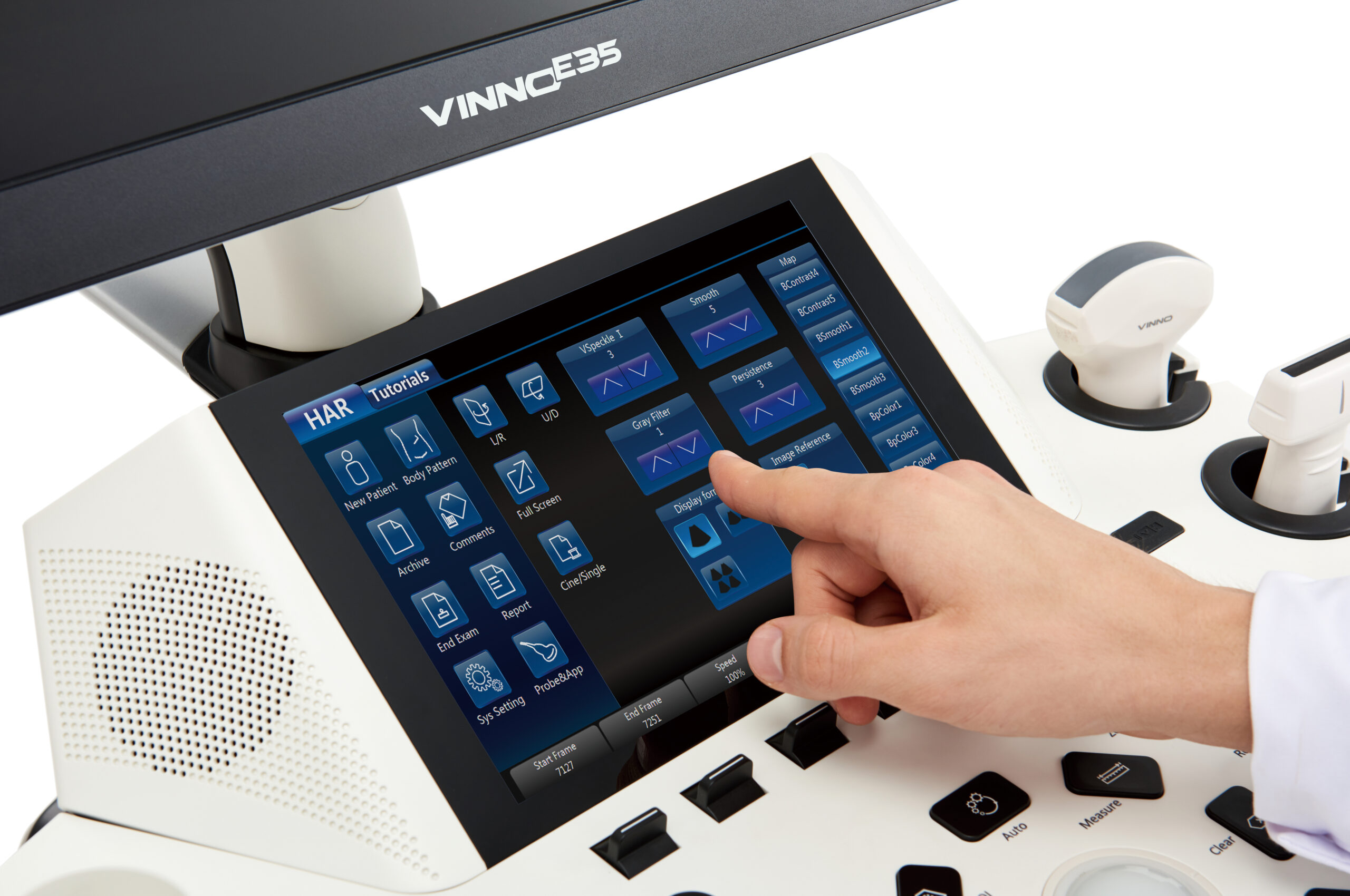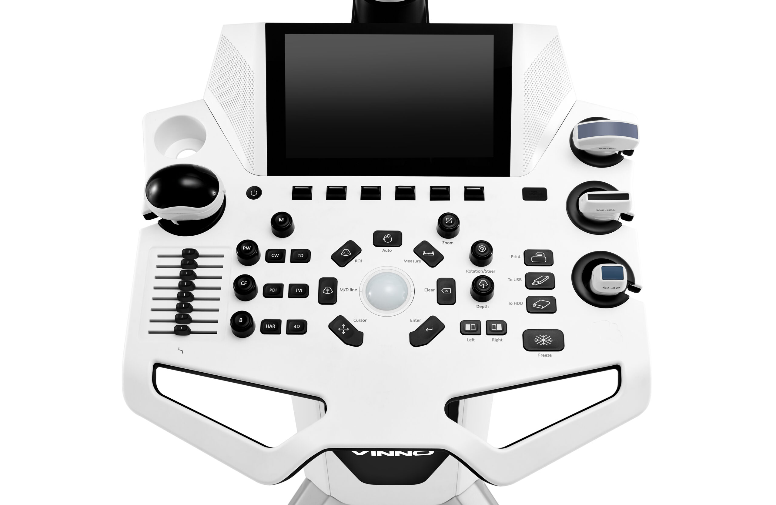 Ultrasonograf charakteryzuje się nowoczesnym designem, wbudowanymi portami głowic i interaktywnym interfejsem. Dzięki wielu funkcjom i możliwościom Vinno E35 jest idealnym rozwiązaniem dla różnych specjalizacji medycznych, w tym kardiologii, badań jamy brzusznej, położnictwa i ginekologii, neurologii, urologii, pediatrii i innych. Jego doskonała wydajność i intuicyjna konstrukcja sprawiają, że jest to niezawodny partner w Twojej klinice, gwarantujący precyzyjne i wiarygodne wyniki każdego badania lekarskiego.